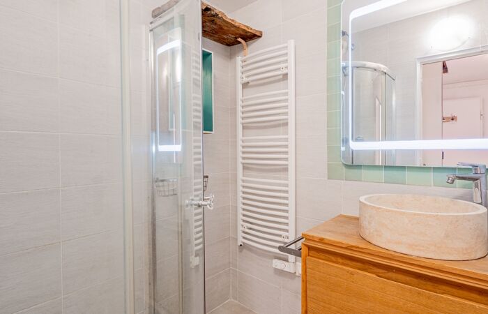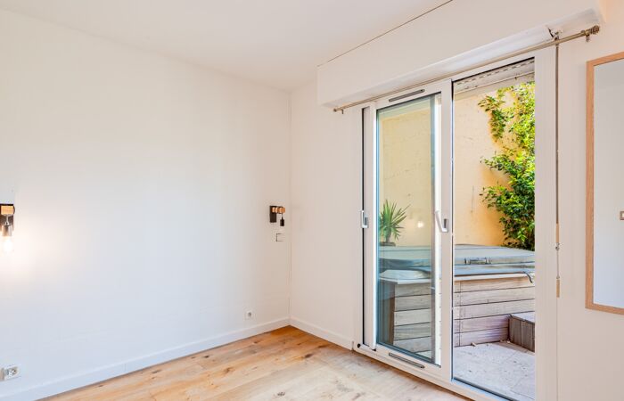 D'une superficie d'environ 45 m², cet appartement offre un séjour baigné de lumière avec cuisine ouverte, s'ouvrant sur une grande terrasse Un escalier permet d'accéder à une seconde terrasse aménagée avec jacuzzi un coin barbecue et un accès à un jardin privatif.