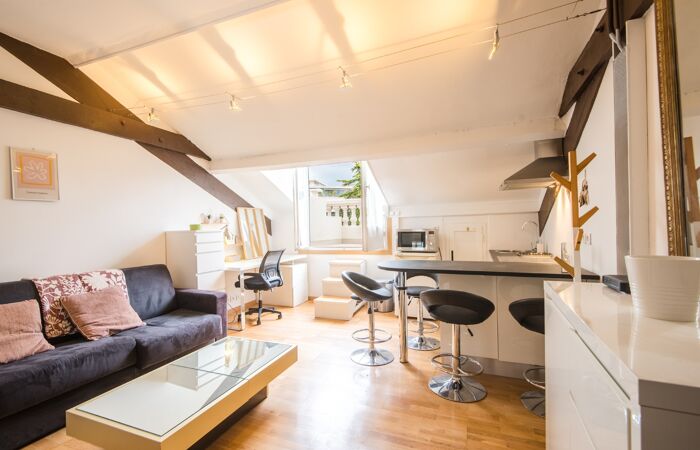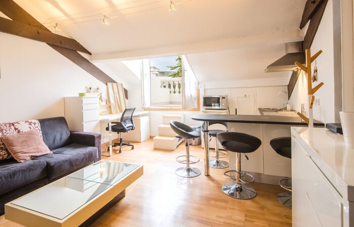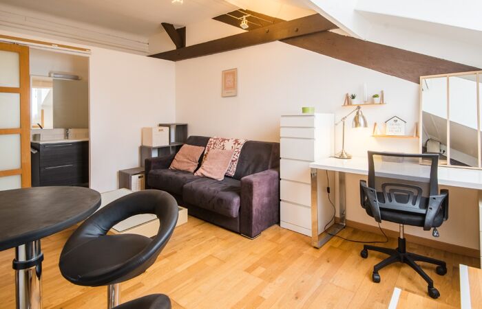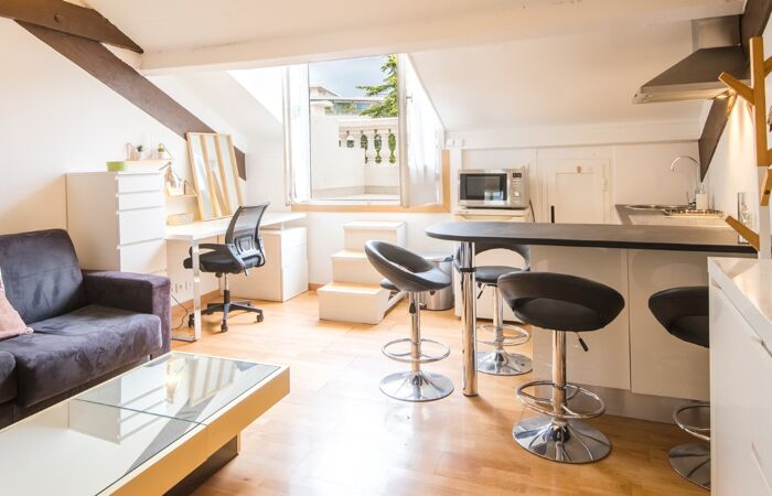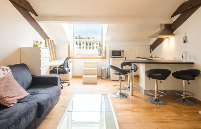 NICE - CIMIEZ : Studio de 22 m² situé en dernier étage d'un palace de standing, cet appartement a été entièrement rénové. Parfaitement optimisé, il est composé d'une pièce principale avec cuisine équipée ouvrant sur une terrasse, d'une salle d'eau et d'une buanderie indépendante. L'appartement est climatisé, avec de faibles charges. Très bel investissement dans un lieu emblématique.