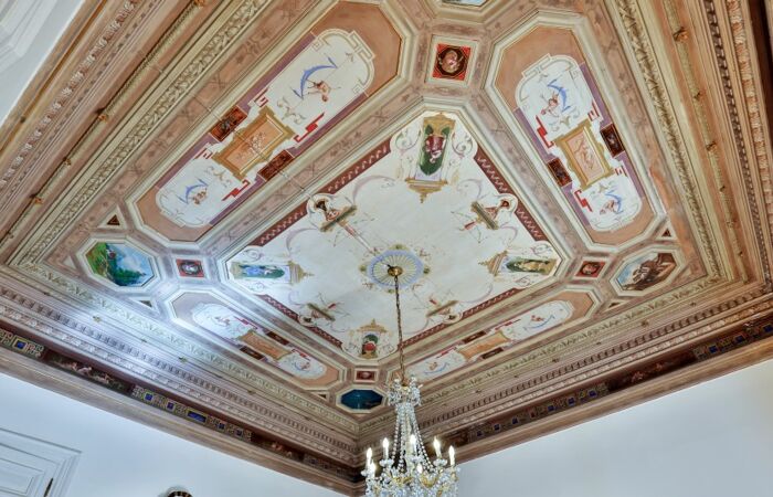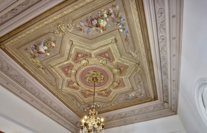 Ce bien exceptionnel bénéficie d'une hauteur sous plafond de près de 4 mètres, l'ensemble des plafonds sont ornés des fresques d'origine, parfaitement préservées.