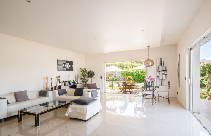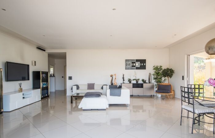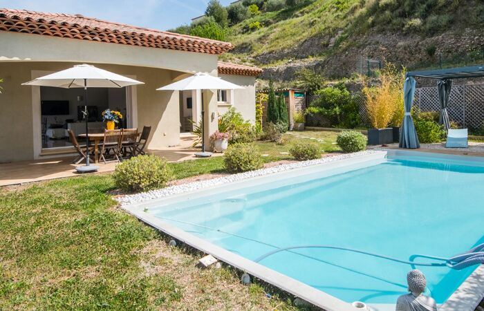 Cette maison, aux prestations raffinées, bénéficie d'une triple exposition et offre une vue parfaitement dégagée sur les collines environnantes.