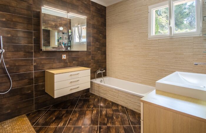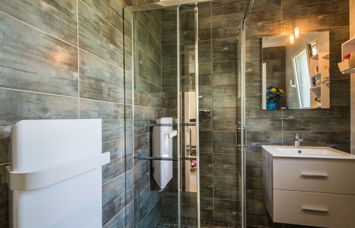 1 chambre parentale avec sa grande SDB et son WC indépendant , une autre chambre parentale avec sa salle d'eau et WC. Une cuisine aménagée et équipée haut de gamme avec un cellier attenant,