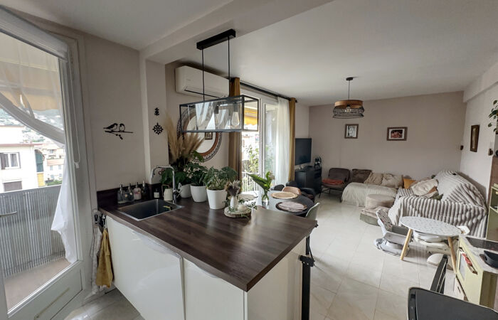 NICE NORD - Le RAY/Haut GORBELLA, idéalement situé, proche de toutes commodités ( école, transport, commerces,...) Très joli 3 pièces de 59 m2 entièrement rénové avec des prestations raffinées, 7 ème étage avec ascenseur, exposition Est-Ouest, très lumineux, bel espace séjour/cuisine US équipée de 22m2, double vitrage, cave , possibilité garage en location 130EUR/mois, charges annuelles: 2640EUR (chauffage et eau chaude et froide inclus), estimation des coûts annuels entre 700 EUR et 1020 EUR par an, copropriété de 772 lots dont 272 appartements, DPE:C-129 et GES:C-23, info sur les risques naturels dispo sur www.georisques.gouv.fr.