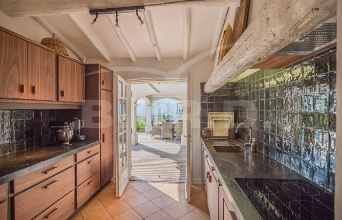 Grande terrasse partiellement couverte avec cuisine d'été extérieure et buanderie. Piscine à débordement à l'eau salée, boulodrome, climatisation dans toutes les pièces, Wi-fi...