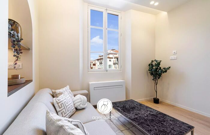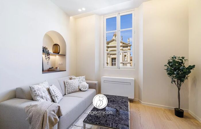 Nice // Vieux Nice - Place Rossetti : 2 Pièces - Rénové Nice // Vieux Nice - Place Rossetti : 2 Pièces - Rénové A proximité immédiate du Cours Saleya et de la promenade des Anglais. Dans un immeuble situé sur la Place Rossetti 2 Pièces traversant au 4ème étage de 30 m², entièrement rénové avec goût. Entrée, desservant directement les différentes pièces de l’appartement. Un séjour/cuisine bénéficiant d’une vue sur la place Rossetti et la Cathédrale Sainte-Réparate de Nice. Traversant cet appartement dispose d’un espace nuit avec dressing sur mesure. Une salle d’eau, vasque, wc et meuble de rangement. Bien soumis au statut de la copropriété : 18 lots principaux. Consommation énergétiques : 163 kWhep/m2.an Émission de gaz à effet de serre : 4 kgeqCO2/m2. an Les informations sur les risques auxquels ce bien est exposé sont disponibles sur le site Géorisques : georisques.gouv.fr Les honoraires d'agence inclus seront intégralement à la charge du vendeur. La présente annonce immobilière a été rédigée sous la responsabilité éditoriale de l'agent commercial mandaté pour la vente de ce bien.