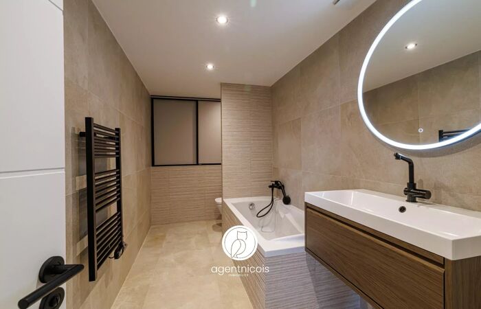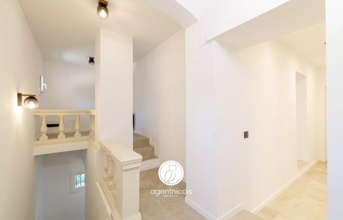 ST-LAURENT-DU-VAR // MONTALEIGNE - Cor. Fahnestock : 5 PIÈCES / DUPLEX / RÉNOVÉ / TERRASSE ST-LAURENT-DU-VAR // MONTALEIGNE - Cor. Fahnestock : 5 PIÈCES / DUPLEX / RÉNOVÉ / TERRASSE Idéalement situé sur les hauteurs de St-Laurent-du-Var. au coeur du quartier Montaleigne ; À proximité du centre-ville. et de toutes ses commodités. À découvrir. un appartement entièrement rénové disposé en duplex sur près de 110m2 composé comme suit : Au niveau supérieur : Entrée. bureau. dégagement. une salle d'eau. trois chambres avec placards dont une avec sa salle d'eau privative en master. Au niveau inférieur : spacieux séjour salle à manger avec cuisine ouverte entièrement équipée. une chambre et une salle d'eau avec espace buanderie. L'ensemble ouvrant sur une terrasse de 40m2 se divisant en deux parties à la fois ouverte et couverte. et à la vue panoramique verdure. Deux places de parking extérieurs agrémentent le bien. Un sujet en définitive. clef en mains avec prestations et finitions de qualité. Climatisation. Aucune procédure en cours (articles 29-1A/29-1 loi 65-557. L.615-6 du CCH) Bien en copropriété: Oui Nombre de lots de copropriété : 17 Charges annuelles de copropriété : 1924,8euros Consommation énergétiques : 171 // kWhep/m2.an Émission de gaz à effet de serre : 5 // kgeqCO2/m2.an Les informations sur les risques auxquels ce bien est exposé sont disponibles sur le site Géorisques : georisques.gouv.fr Les honoraires d'agence seront intégralement à la charge du vendeur. La présente annonce immobilière a été rédigée sous la responsabilité éditoriale de l'agent commercial mandaté pour la vente de ce bien.