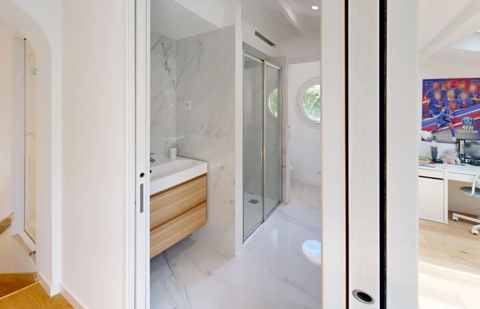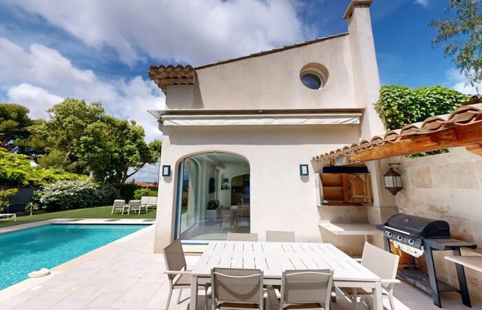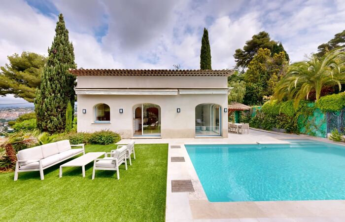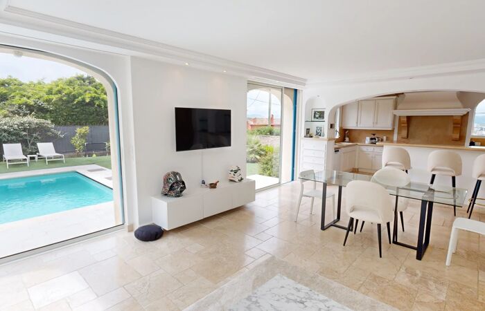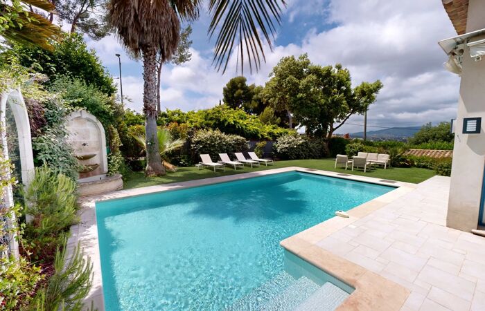 EXCEPTIONNELLE PROPRIETE LUXUEUSE ET DE CARACTERE Offrez-vous le luxe absolu avec cette villa de caractère, offrant un aperçu mer et vue sur les collines. Nichée dans un quartier résidentiel, paisible et très prisé au cœur des collines cannoises. D'une surface habitable de 200 m² sur un terrain de 980 m² (exposition sud-ouest), cette propriété a été entièrement rénovée avec des matériaux de prestige, notamment la pierre de Bourgogne. Cette villa de 6 pièces, comprenant 4 chambres dont une suite parentale en RDC avec salle de bain (balnéothérapie et douche), dressing et WC indépendant, un studio avec entrée indépendante en rez de jardin et les 2 autres chambres situées à l’étage avec une salle de douche et WC et combles aménageables avec clim et parquet. Une piscine de 4m * 9m, une cuisine d’été, une annexe pouvant être un atelier, une salle de sport, une cave à vin voutée et climatisée, une buanderie, un carport pour 2 voitures complètent ce bien. Equipée d’une climatisation réversible et d'une aspiration centrale ainsi que d’une alarme, cette villa lumineuse et spacieuse est une véritable perle rare, combinant élégance, modernité et confort. CONTACT : 07-71-05-19-51