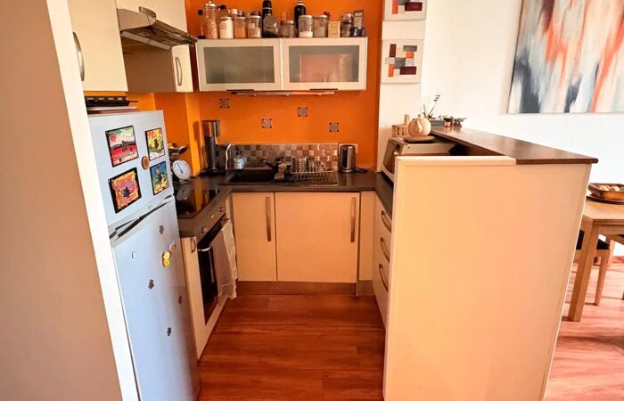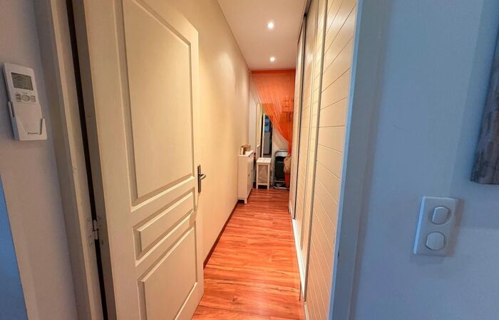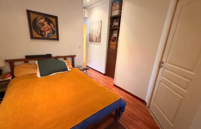 L’appartement, traversant Sud/Nord, bénéficie d’une belle luminosité et d’une ventilation naturelle agréable. En très bon état, il est équipé de la climatisation et se compose d’un séjour, d’une chambre confortable, d’une cuisine fonctionnelle et d’une salle d’eau. Deux balcons offrent un espace extérieur appréciable. Une cave complète ce bien.