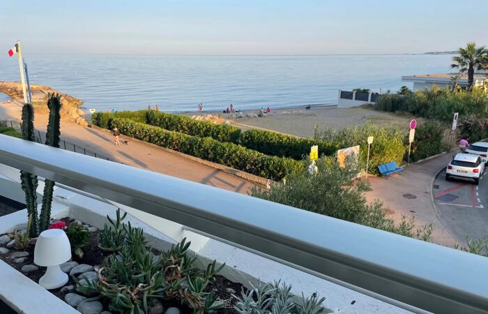 L'AVIS DU PROPRIETAIRE:'Grande terrasse de 14 m² pour déjeuner face à la Méditerranée, accès immédiat à la plage pour une baignade devant chez soi.'