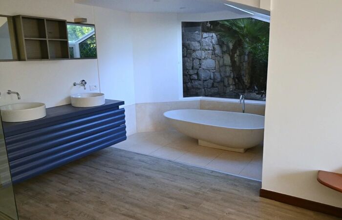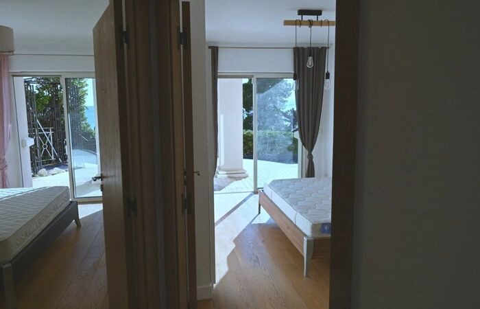 - au 2ème étage / rez-de-jardin : quatre chambres avec vue mer dont une masterbedroom, deux salles de bains avec WC dont un indépendant, un dressing et un cellier.