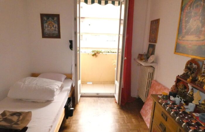 2 pièces au troisième étage, donnant sur cour exposé plein sud, au calme, dans une résidence de la fin des années 50 avec ascenseur et qui se compose d'une entrée, d'une cuisine semi-ouverte sur le séjour donnant sur un balcon, une salle de bains avec toilette, une chambre avec placard donnant sur un balcon. Ce bien est en bon état, pas de gros travaux à prévoir. Une cave de bonne taille et saine complète le tableau.