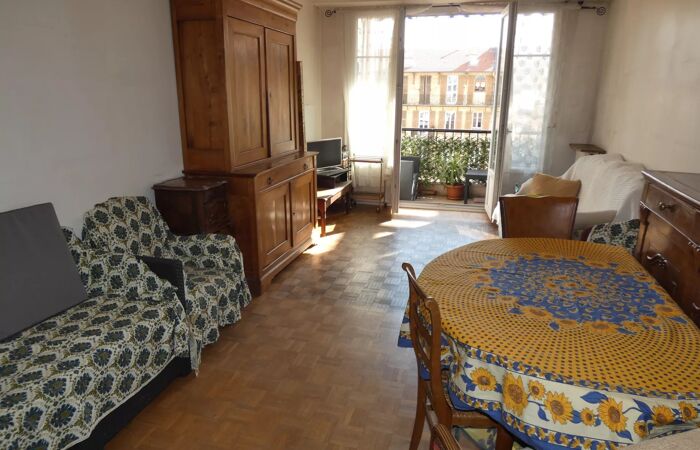 NICE République : Idéalement situé entre les places du Pin, Arson et Pellegrini, à 2 pas de Garibaldi et du tramway, dans une résidence bien tenue avec ascenseur, superbe 4 pièces de 78m² en étage élevé traversant Sud-Nord comprenant un séjour, 3 chambres, cuisine indépendante, SDB, WC, balcons, cave. Travaux à prévoir !