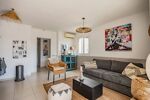 Entièrement de plain-pied, l’accès à l’appartement se fait par un petit chemin. Dès l’entrée, vous découvrirez un beau séjour très lumineux avec une cuisine entièrement équipée.
