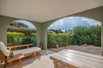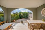 Ce séjour s’ouvre sur une terrasse couverte prolongée par un jardin exposé ouest.