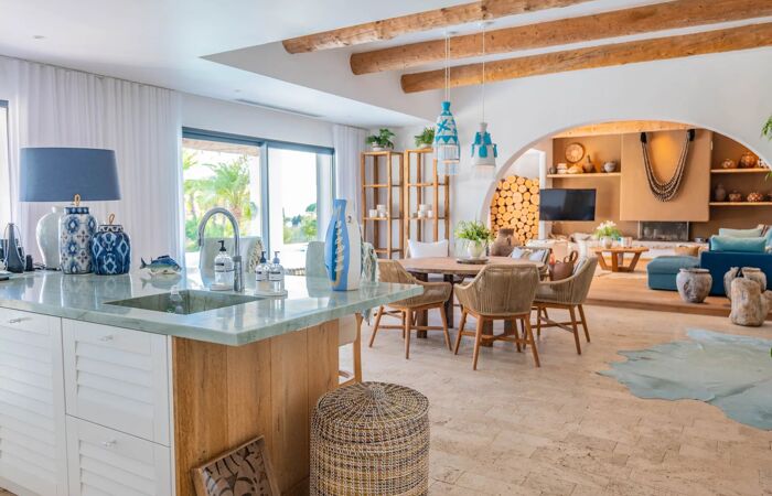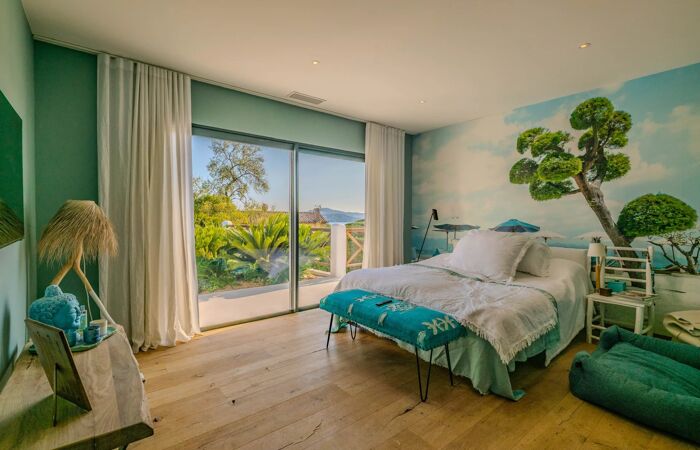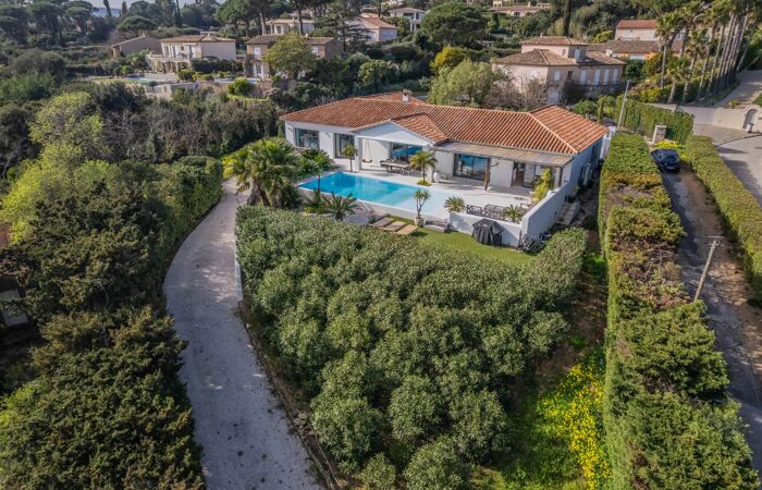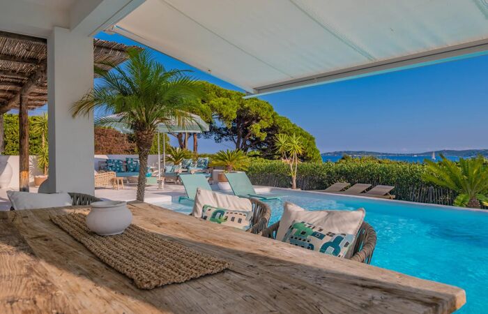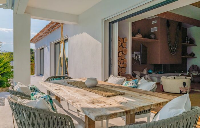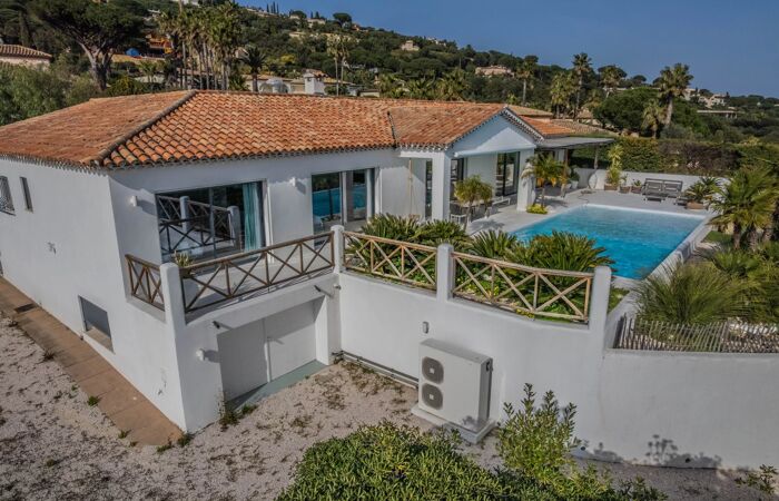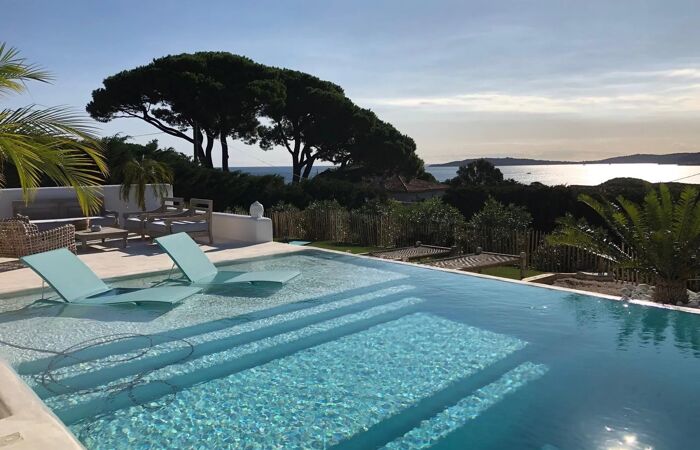 VILLA AVEC VUE SUR SAINT TROPEZ Dans un environnement paisible, à seulement 500 mètres de la plage, cette villa contemporaine bénéficie d’une exposition plein sud offrant une vue imprenable sur Saint-Tropez.