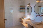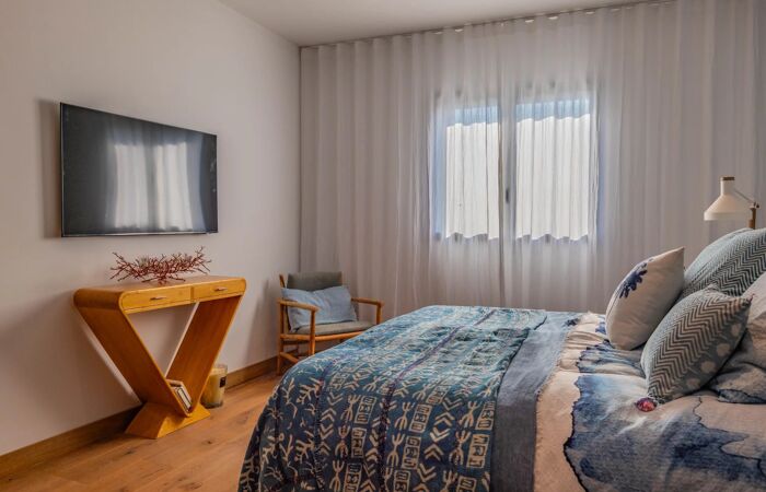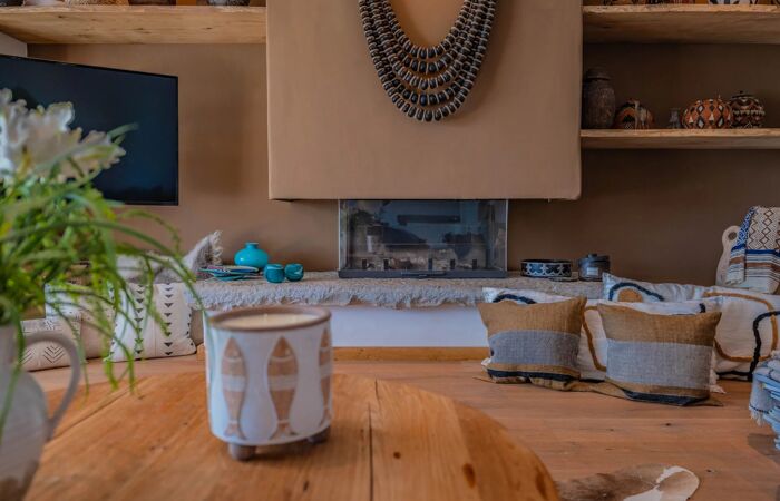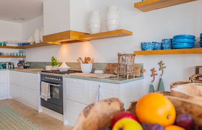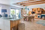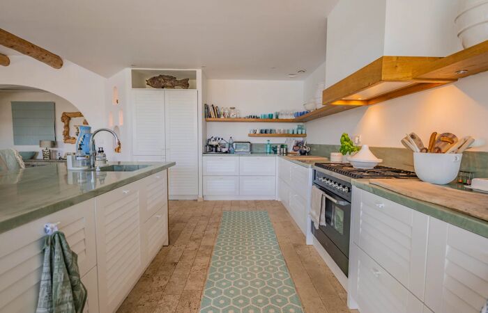 De plain-pied, elle se compose d’une entrée, d’une cuisine ouverte sur un vaste salon-séjour avec cheminée, de quatre chambres et d’une buanderie.