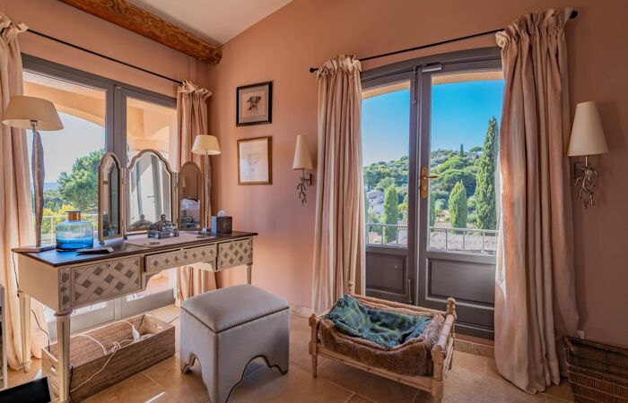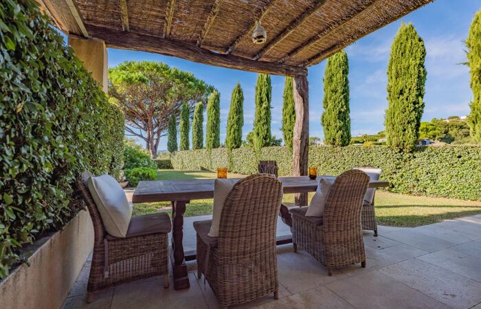 EXCLUSIVITÉ - VILLA DOMAINE PRIVÉ VUE MER Située dans un domaine privé et sécurisé, cette somptueuse villa récemment rénovée incarne parfaitement l’art de vivre méditerranéen. À deux pas de la plage, tout en préservant calme et intimité, elle offre un cadre de vie unique face à la baie de Saint-Tropez.