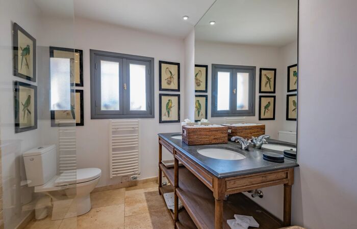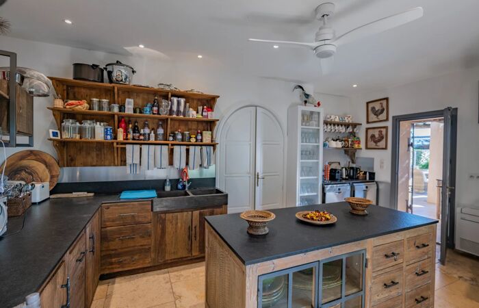 À l’extérieur, une magnifique piscine invite à la relaxation, dans un environnement verdoyant où règne tranquillité. Chaque détail a été soigneusement pensé lors de la rénovation afin d'offrir un confort moderne tout en conservant le charme authentique de la villa.