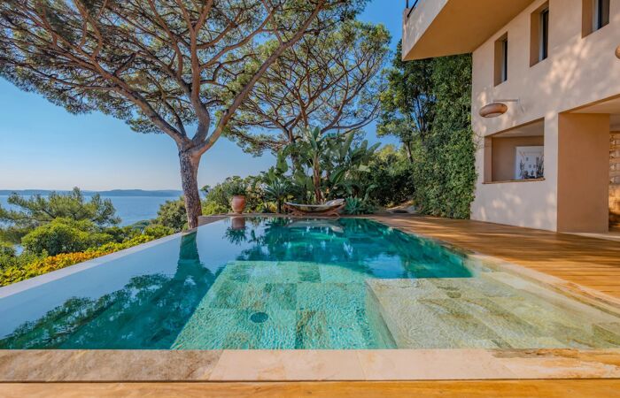 Villa d’exception avec vue mer panoramique sur le Golfe de Saint-Tropez Parfaitement en harmonie avec la nature environnante, découvrez cette villa exceptionnelle avec une vue mer spectaculaire sur le Golfe de Saint-Tropez.