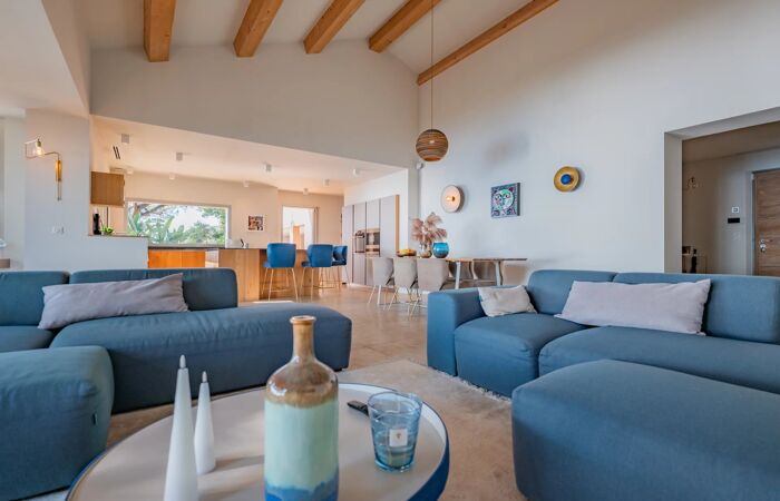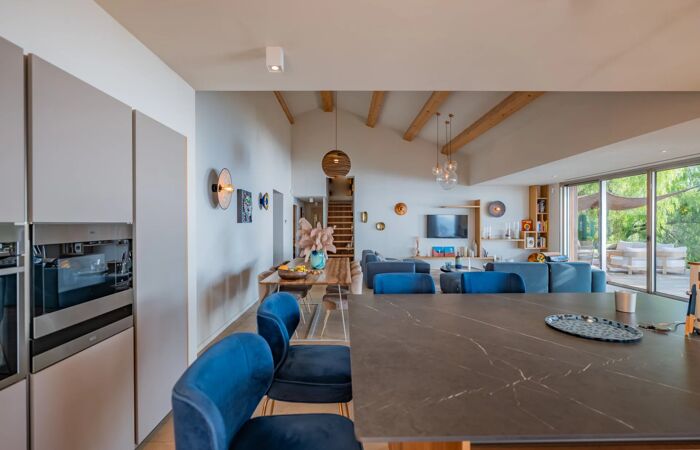 Conçue avec des matériaux luxueux, la villa séduit par son style contemporain et raffiné. Les espaces de vie sont lumineux, ouverts sur l’extérieur et pensés pour être faciles à vivre et confortables. Elle dispose de cinq chambres toutes en suite, dont une indépendante, offrant intimité et bien-être à chacun de ses occupants.