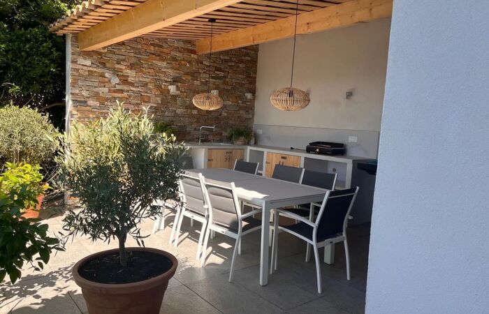 À l’extérieur, vous profiterez d’un pool house avec cuisine d’été aménagée ainsi que de nombreuses terrasses. La villa est équipée d’une piscine chauffée, de volets roulants électriques, d’un système d’alarme, de la climatisation et d’un éclairage extérieur.