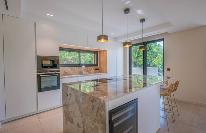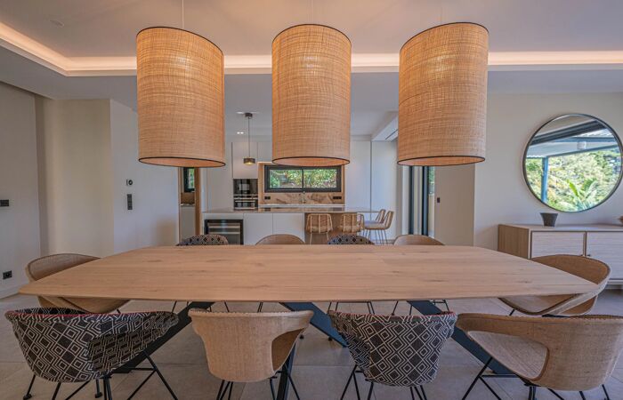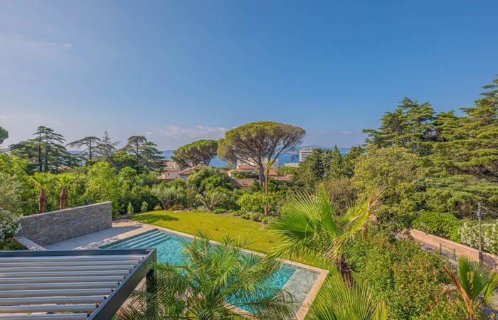 SAINTE MAXIME : Villa neuve avec vu mer à pieds du centre-ville À quelques pas du centre-ville, des plages et du port de Sainte-Maxime, cette villa neuve d’exception bénéficie d’une vue mer.