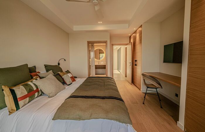 À l’étage, vous trouverez quatre chambres en suite, chacune avec sa propre terrasse.