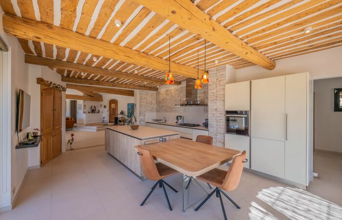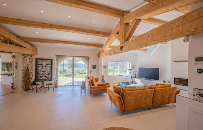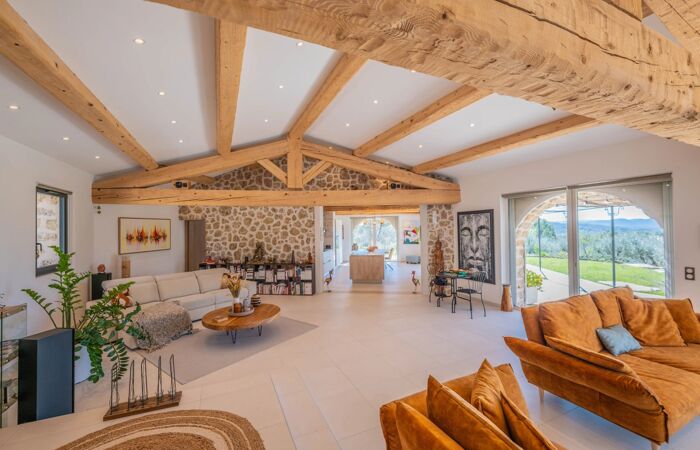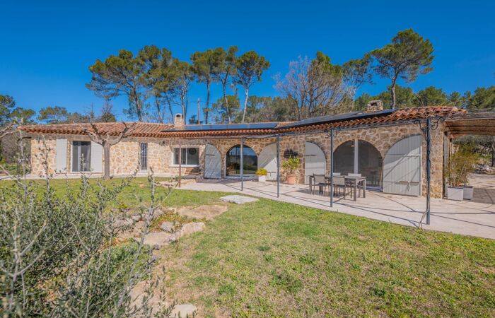 Maison de prestige authentique et contemporaine Si vous rêvez d’un havre de paix, de nature et d’une vue exceptionnelle sur le massif des Maures, cette maison est faite pour vous ! À l’écart de toute nuisance, cette demeure de caractère en pierre, de plain-pied, offre environ 200 m² habitables, complétés par près de 200 m² de sous-sol aménagé. Cette villa illustre avec justesse l’élégance et l’art de vivre provençal, sublimés par une vue saisissante.