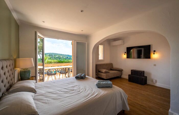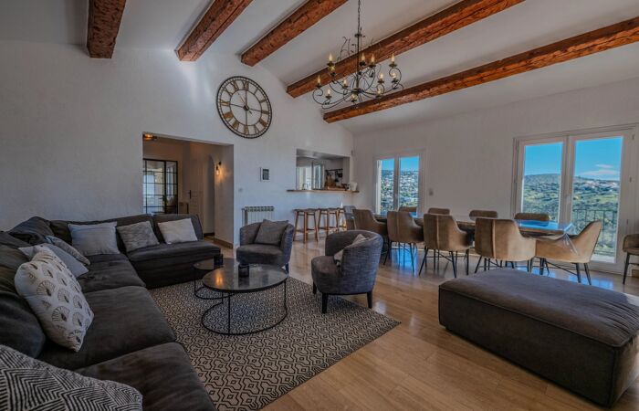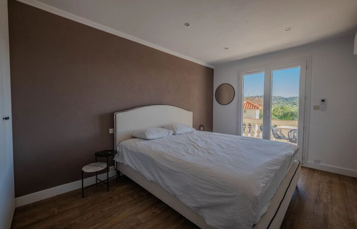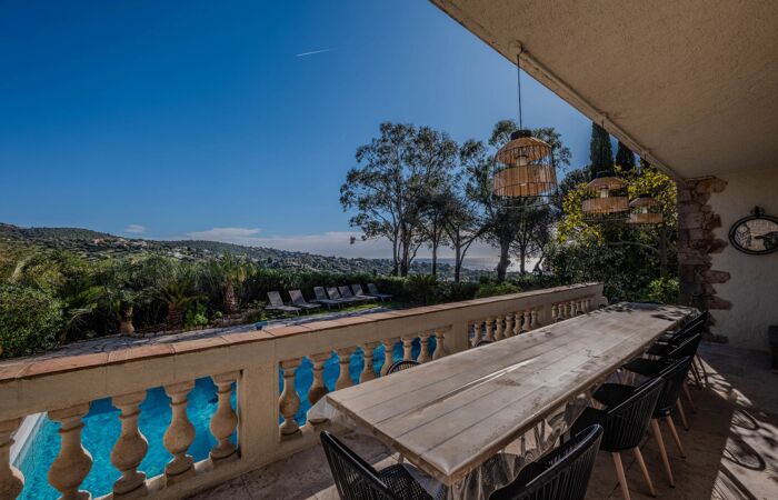 LES ISSAMBRES : Villa avec vue mer Villa rénovée récemment, très bien située à quelques minutes des plages, avec une belle vue sur la mer et les collines.
