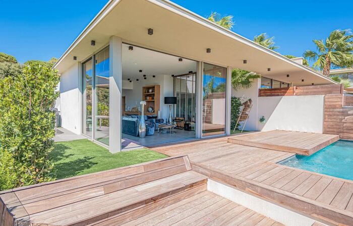À seulement quelques pas de la plage, au cœur d’un domaine sécurisé et exclusif composé de 13 villas, cette propriété contemporaine séduit par sa situation exceptionnelle à Sainte-Maxime.