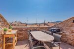 A l'étage, une grande terrasse de 15m² avec vue sur les toits et la mer, une cuisine d'été et une plancha idéal pour cuisiner vos plats.