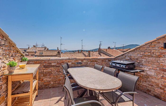 DUPLEX AU COEUR DU VIEUX CENTRE-VILLE Nous vous proposons pour votre séjour un duplex au dernier étage d'une maison de village à Sainte-Maxime.
