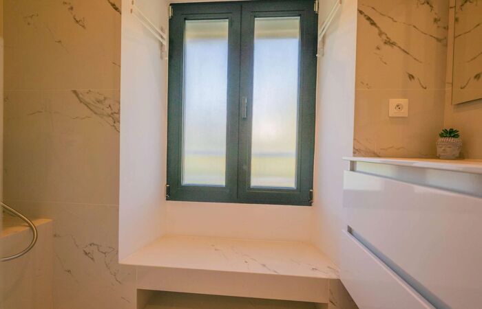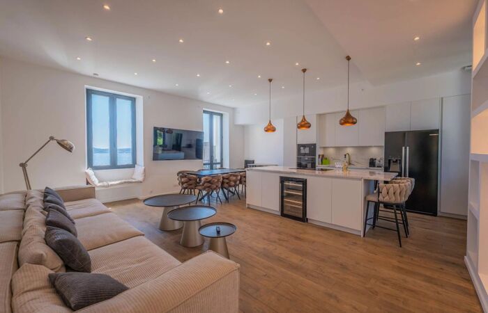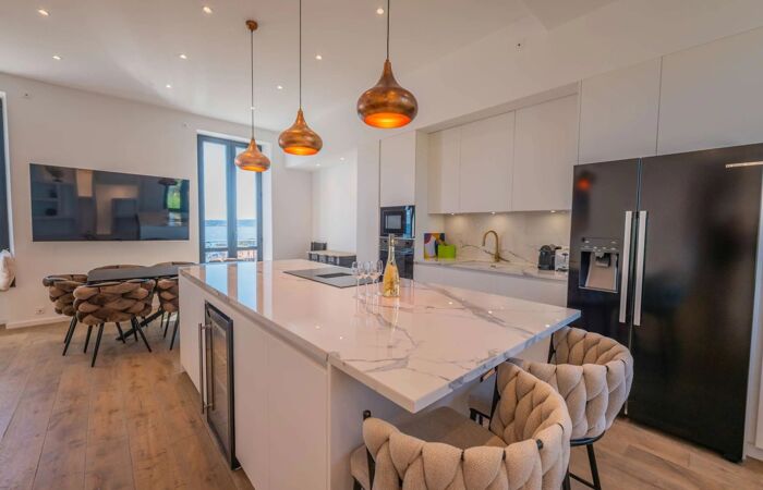 Un salon et sa salle à manger pour y vivre de beaux moments de partage, de vacances aux couleurs de la Méditerranée. Une belle cuisine contemporaine entièrement équipée (four, four micro-ondes, lave-vaisselle, machine à café capsules)