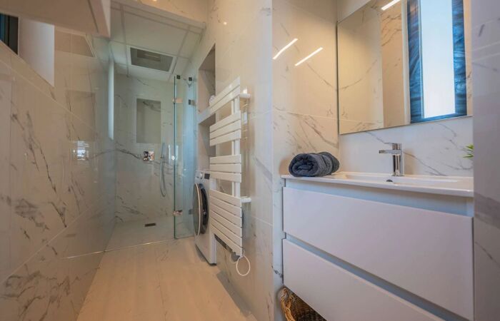 Dès son entrée vous serez charmé par son ambiance à la décoration moderne. Une première chambre double et sa belle vue mer, elle est composée d'une mezzanine avec un lit double d'appoint. Une vaste douche attenante (lave-linge). Une seconde chambre double et sa salle de douche.