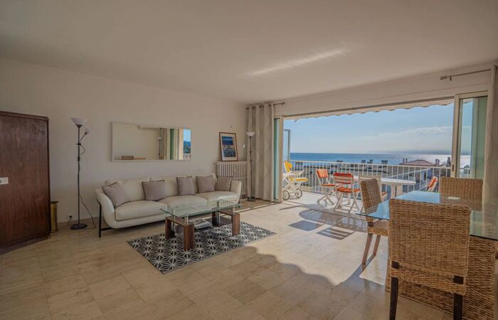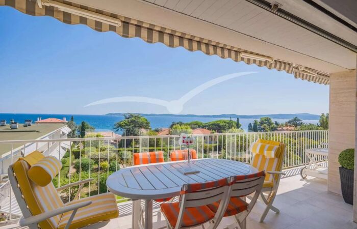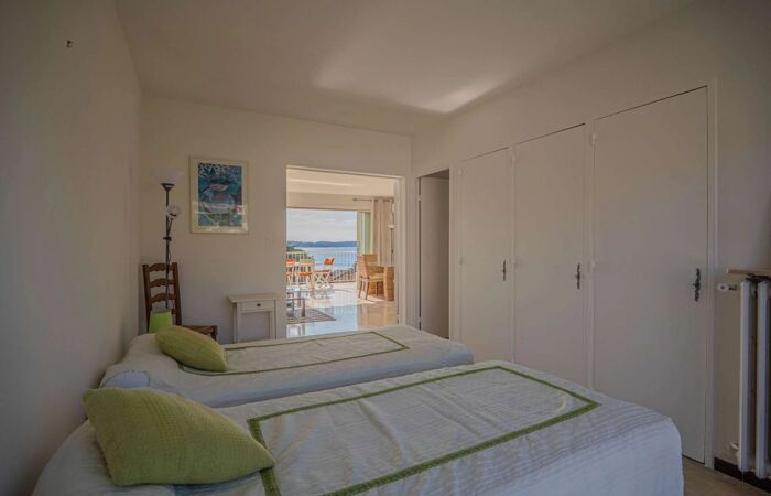 BEL APPARTEMENT SAINTE MAXIME - CENTRE VILLE VUE MER EXCEPTIONNELLE Dans une belle résidence fermée et sécurisée du Centre-Ville de renom, très Bel appartement de 3 Pièces (83m²) avec une Vue mer panoramique sur le Golfe de Saint-Tropez. Il se compose dun vaste séjour ouvert sur une terrasse. Une cuisine fermée et équipée (réfrigérateur, Four, four micro-ondes, machine à café classique et à expresso) une chambre double avec vue mer (160x190cm) et une salle de douche attenante, une chambre double (deux lits simples 90x90cm) ; une salle d'eau (1 wc et un lave-linge) un wc invité. Climatisation.