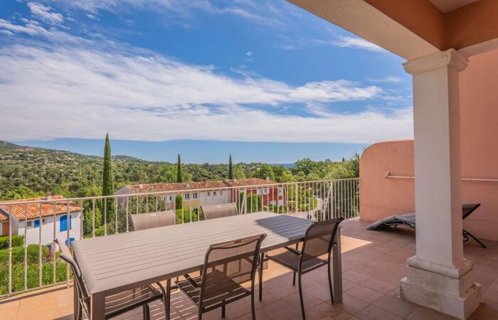 APPARTEMENT AVEC VUE MER DOMAINE DES RESTANQUES, GRIMAUD Situé au cur du prestigieux Domaine des Restanques à Grimaud, résidence sécurisée et recherchée du Golfe de Saint-Tropez, ce charmant appartement trois-pièces climatisé est lendroit idéal pour profiter de vacances en toute sérénité, avec une agréable vue mer.