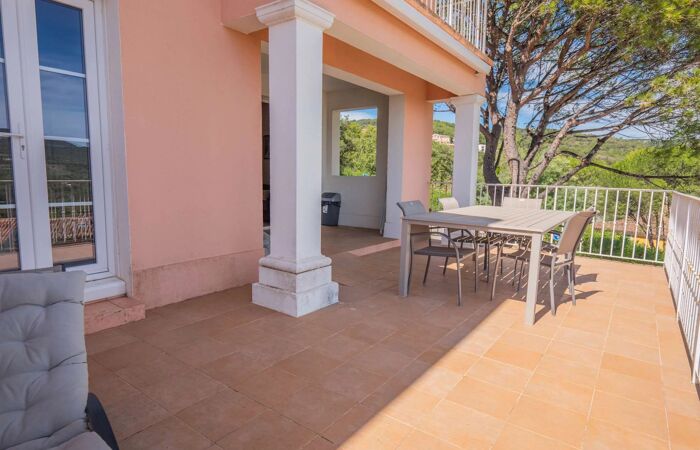 Le séjour souvre sur une magnifique terrasse denviron 30 m² avec vue sur la mer, parfaite pour vos repas en extérieur, vos moments de détente au soleil ou vos soirées dété face au Golfe de Saint-Tropez.