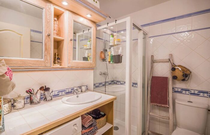 L'appartement se compose d'une entrée, d'un spacieux séjour/salle à manger avec une cuisine ouverte équipée et aménagée, 2 chambres avec 2 salles de bains/douche et 1 WC. Vous pourrez profitez de bons plats méditerranéens sur la grande terrasse couverte avec son barbecue. Climatisation dans le séjour, télévision, store électrique, piscine et parkings sont à votre disposition.