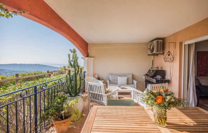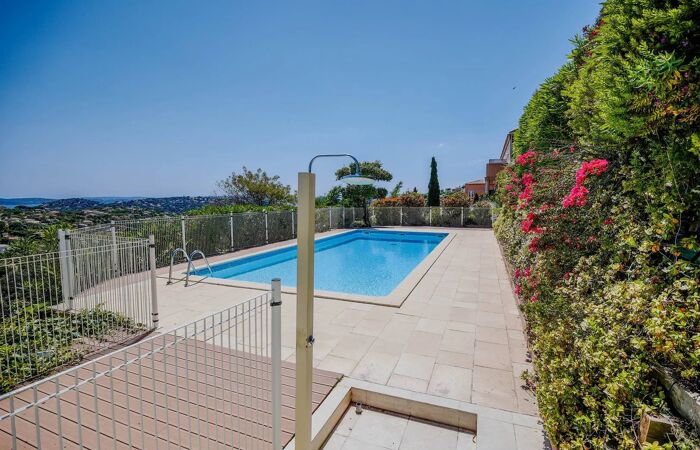 Appartement dans une résidence privée avec piscine Pour vos vacances à Sainte-Maxime dans une résidence privé avec piscine, à seulement quelques minutes de marche du Club House des Greens et non-loin du centre-ville et des plages de la Nartelle, nous vous proposons un appartement de 60 m² situé au rez-de-chaussée offrant une jolie vue sur les collines et la mer.