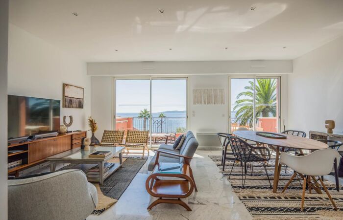 LOCATION SAISONNIERE - Magnifique appartement avec vue mer panoramique À Sainte-Maxime, face à la mer et à la plage, magnifique appartement de 107 m² offrant une vue panoramique exceptionnelle sur la Baie de Saint-Tropez. Idéalement situé dans une résidence de luxueuse avec piscine à quelques pas du centre-ville, cet appartement est parfait pour des vacances paisibles et inoubliables.