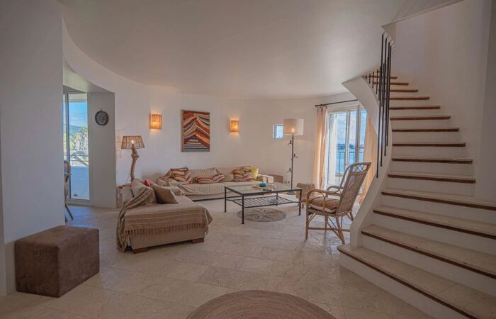Au 2ème étage sans ascenseur, dès l'entrée vous y trouverez une très jolie cuisine entièrement équipée (plaques de cuisson, lave-vaisselle, réfrigérateur, machine à café à capsules) ouvert sur le double salon et salle à manger pour y vivre de jolis moments de vacances. Une magnifique vue sur le Golfe de Saint Tropez. Deux jolies chambres doubles et leur salle de douche attenantes au premier étage. A l'étage, en mezzanine, une jolie chambre avec 2 lits simples. WIFI, climatisation et parking.