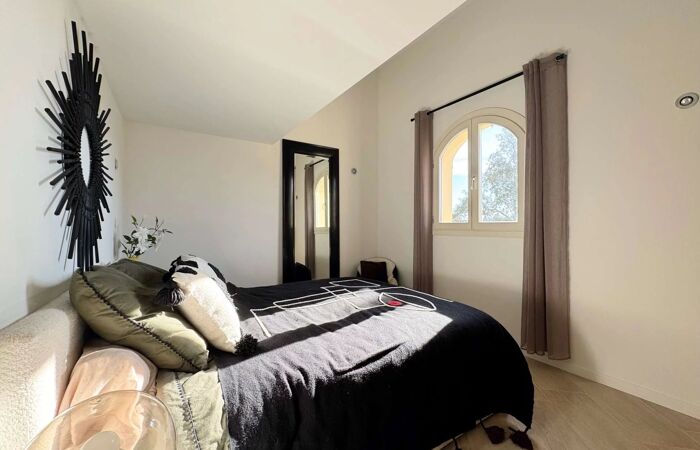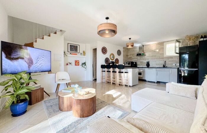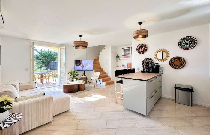 MAISON JUMELEE AVEC PISCINE - 3 CHAMBRES A Grimaud, entre la Garde-Freinet et Saint-Tropez, charmante villa mitoyenne d'environ 90m² construite sur trois niveaux entièrement climatisée.