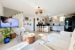 Elle se compose de rez-de-chaussée : un séjour avec coin télévision et une salle à manger, une cuisine ouverte entièrement équipée et aménagée, un wc invité.
