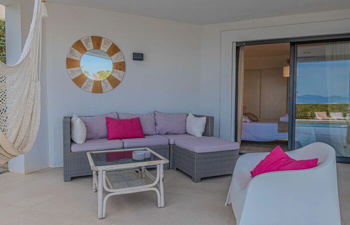 LES ISSAMBRES - BAS DE VILLA VUE MER PANORAMIQUE LES ISSAMBRES dans une Villa en front de mer : un bas de villa qui offre une vue mer panoramique sur l'Estérel.