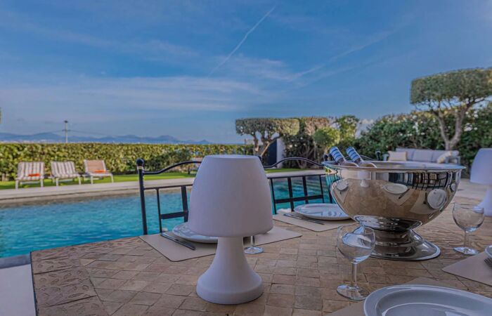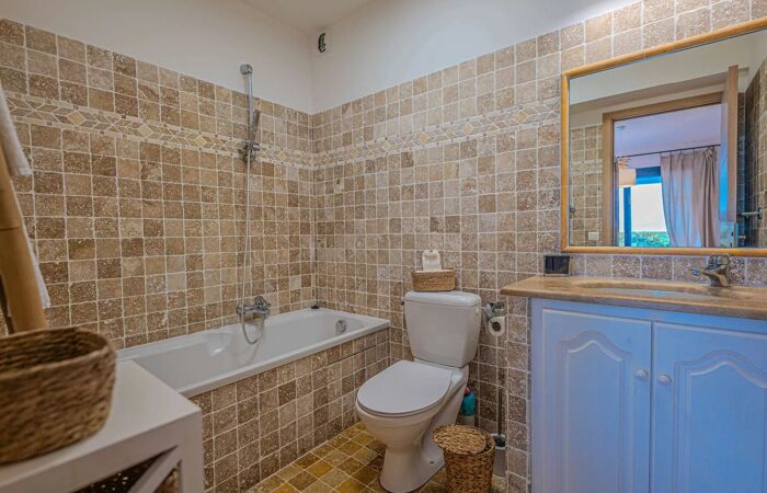 Vous bénéficiez de la piscine, de son jardin luxuriant et arboré, un coin salon d'été, une douche extérieure. Profitez du boulodrome qui offre une vue mer à couper le souffle. Un accès privatif pour rejoindre la plage à pied !