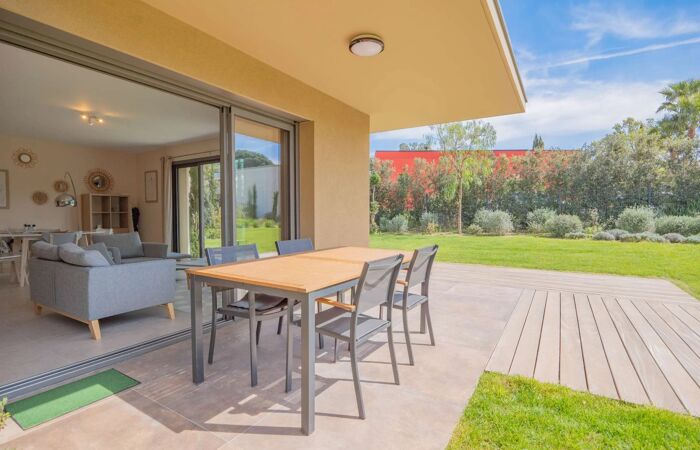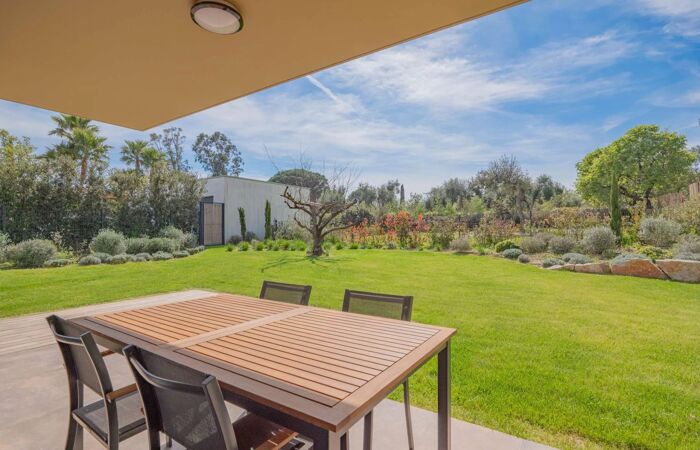 GRIMAUD - MAGNIFIQUE APPARTEMENT EN REZ DE JARDIN Grimaud - Venez découvrir ce magnifique appartement situé dans une Résidence récente Haut de Gamme au cur du Golf de Beauvallon et a proximité directe de la plage.