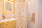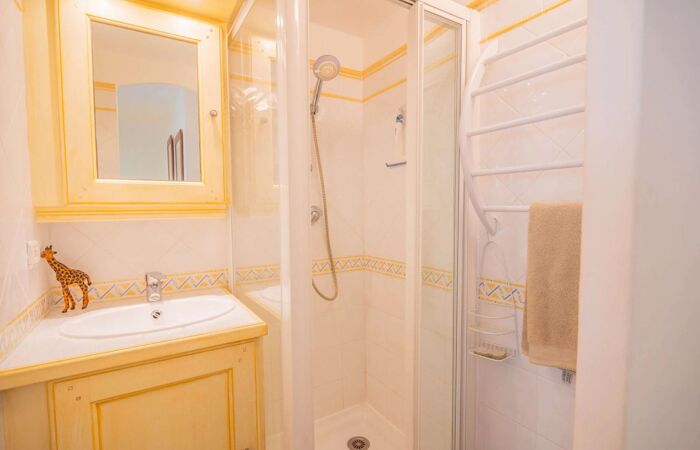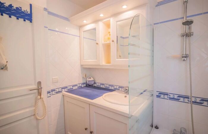 Deux grandes chambres doubles : une chambre double avec deux lits simples et sa salle de bain attenante, de nombreux rangements. Une seconde chambre double et sa salle de douche, un wc invités.