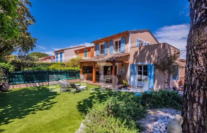 VILLA SAINTE MAXIME - JARDIN - PROCHE DU CENTRE VILLE A Sainte-Maxime, dans un Domaine privé et sécurisé, proche du centre ville et de ses commerces ; très belle maison mitoyenne dun côté de 99 m² sur un terrain de 348 m².