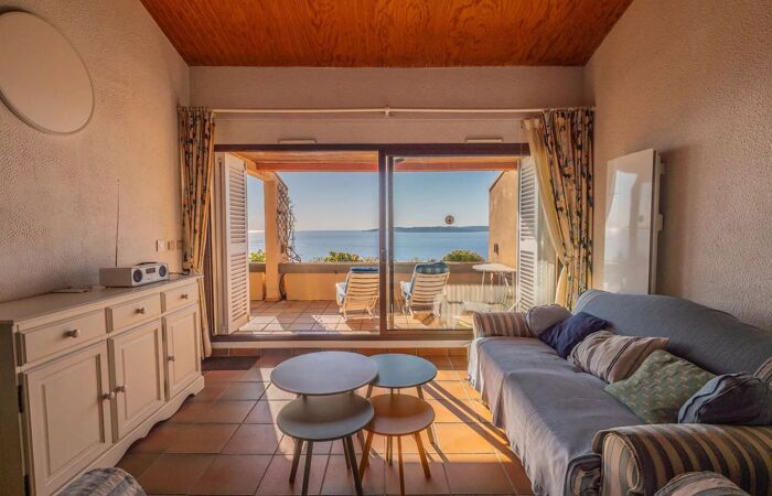 APPARTEMENT AVEC VUE MER PANORAMIQUE Situé dans une résidence renommée à seulement 100 mètres de la mer, ce bel appartement est ladresse idéale pour des vacances face à la Méditerranée. Il bénéficie dune vue mer panoramique exceptionnelle et dun environnement privilégié.