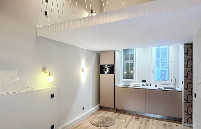 STUDIO AVEC LOGGIA - RIQUIER Charmant studio de 25 m² (loi Carrez) complété par une mezzanine de 5 m² et une loggia de 5 m² , situé dans une cour au calme. Traversant sud- nord. Entièrement refait à neuf et vendu meublé. Double lit en mezzanine et canape convertible en séjour. AirBnb Accepte!