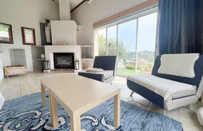 Maison/Villa 5 pièces LA GAUDE, A 30 minutes de Nice, Maison individuelle de 5 pièces de 1990 sur 2 niveaux d'une superficie de 150M² avec piscine sur un terrain de 2500M² en restanques. La maison se compose d'une entrée, une salle à manger de 25M², cuisine indépendante équipée, un séjour avec cheminée de 22M². A l'étage: 4 chambres, salle de bain avec douche, dressing, 2 wc indépendant, une buanderie. Stationnement pour 3 voitures. Bon état général. Vue dégagée sur la mer et les collines, au calme absolu, cadre idyllique. Classe énergie: C.